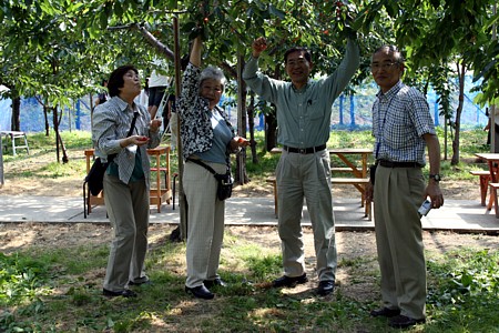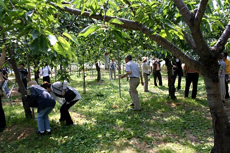 広いハウスの中は結構まだまださくらんぼが一杯 |